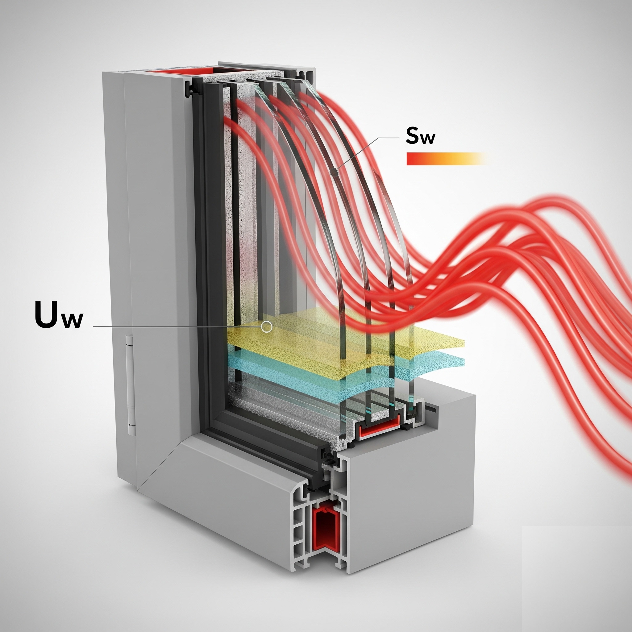 Le Sw (Solar factor for windows — facteur solaire de la fenêtre) mesure la quantité d'énergie solaire qui traverse la fenêtre et pénètre dans le logement. Il s'exprime en valeur comprise entre 0 et 1 :